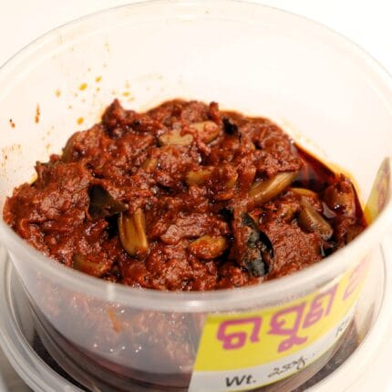 Garlic Pickle from Odisha is a testy and aromatic condiment made with fresh garlic cloves, mustard seeds, spices, and a touch of oil. This traditional Odia achar delivers a perfect balance of spiciness and tang, enhancing the flavor of any meal. Naturally prepared using time-honored methods, it captures the authentic taste of Odisha, making it a must-have accompaniment for rice, roti, or snacks